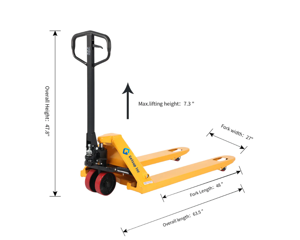 Perfect for frequent material handling in manufacturing, distribution, and storage operations, this pallet truck meets professional industrial standards for strength, stability, and efficiency.