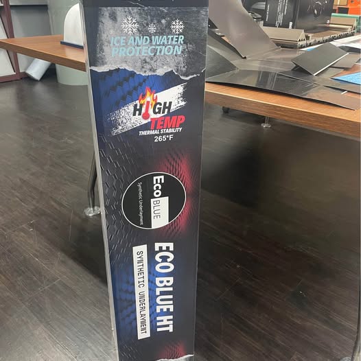 Eco Blue HT is a HT/LT self-adhered ice & water shield with a butyl adhesive base.
