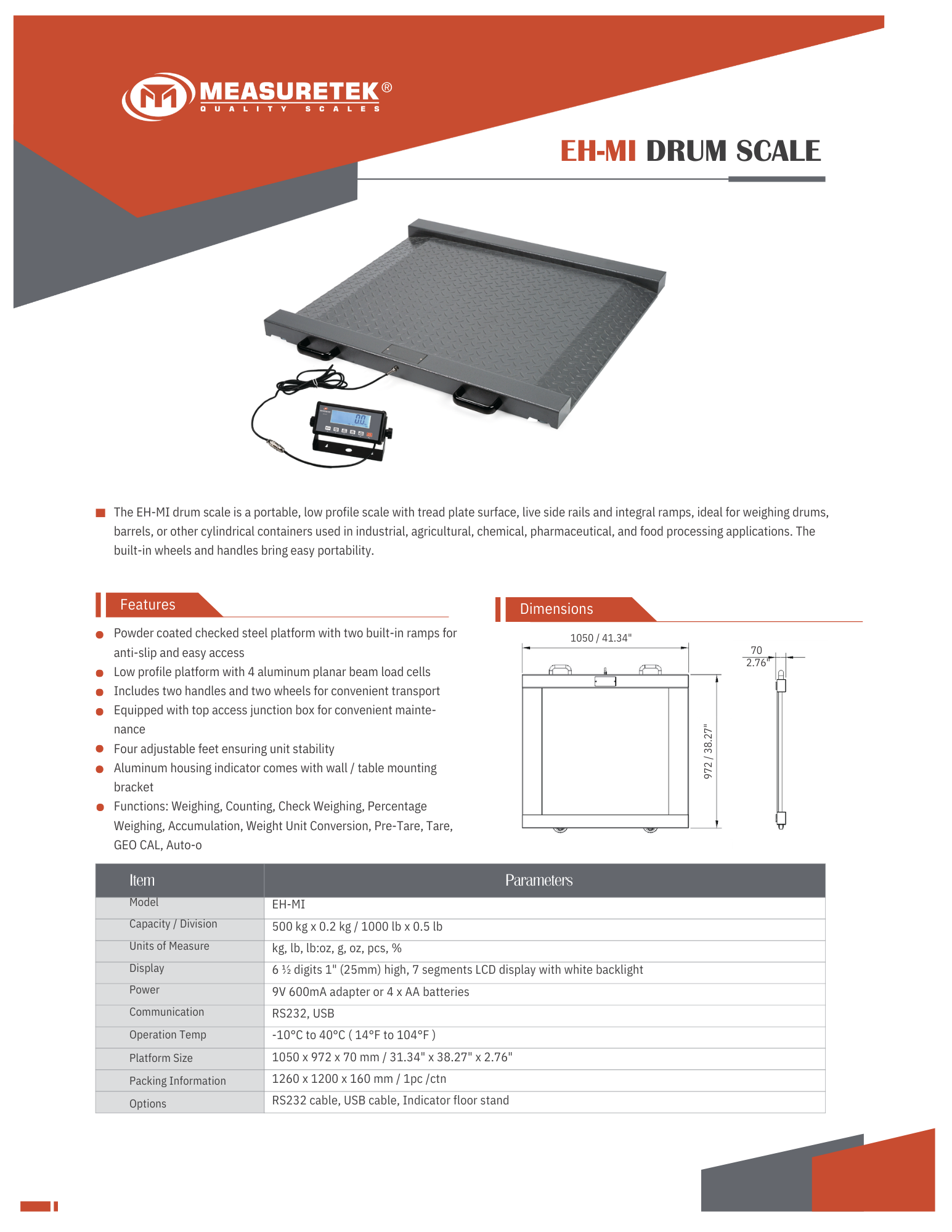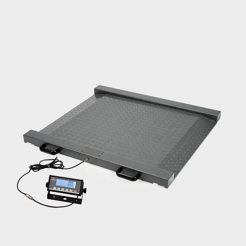 Β 500kg/1000lb Heavy Duty Floor Scale/Platform Scale/Low Profile Drum Scale/Industrial Scale/Anti-Slip Platform Durable Platform: Powder-coated, checkered steel surface with two built-in ramps for anti-slip safety and smooth access. Low-Profile Design: Fitted with four aluminum planar beam load cells for reliable and precise performance.
